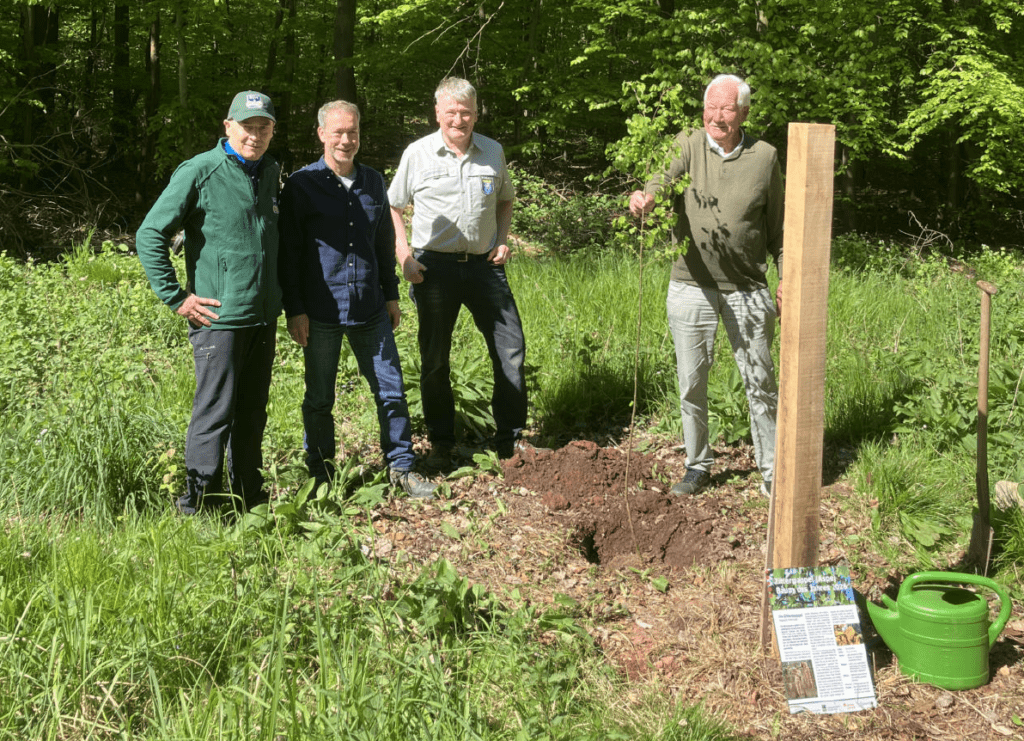 Am 23.04.2026 haben die Schutzgemeinschaft Deutscher Wald, HessenForst und die Wissenschaftsstadt Darmstadt eine Zitterpappel als Baum des Jahres 2026 auf der Jahresbaumallee bei Darmstadt-Kranichstein gepflanzt (v. l. n. r.): Klaus-Dieter Wenzel, Geschäftsführer der SDW DaDi, Michael Kolmer, Umweltdezernent der Stadt Darmstadt, Hartmut Müller, Leiter Forstamt Darmstadt, und Dr. Arnulf Rosenstock, stellvertretender Vorsitzender SDW DaDi. (Foto: Forstamt Darmstadt)