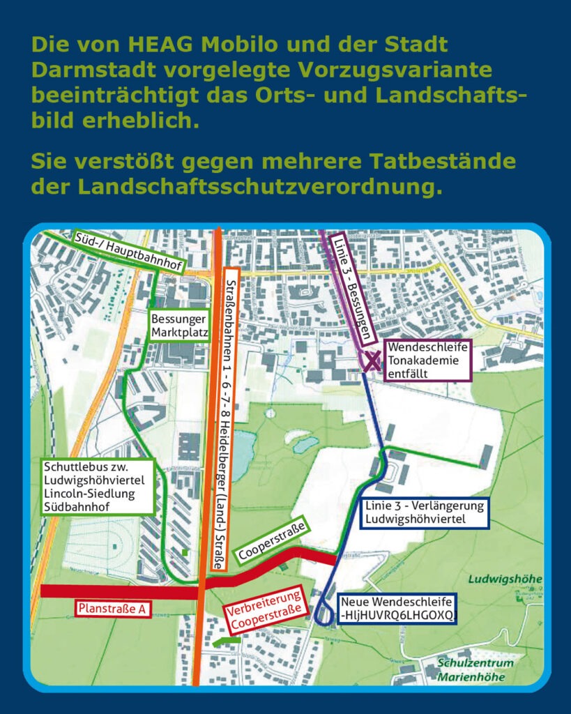 Die im Rahmen der Änderung des Planfeststellungsverfahren vom 23.10.2025 von HEAG Mobilo und der Stadt Darmstadt vorgelegte Vorzugsvariante beeinträchtigt das Orts- und Landschaftsbild erheblich.